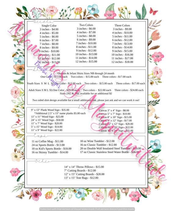 Garden Floral Price Sheet - Vinyl Business - Digital ...